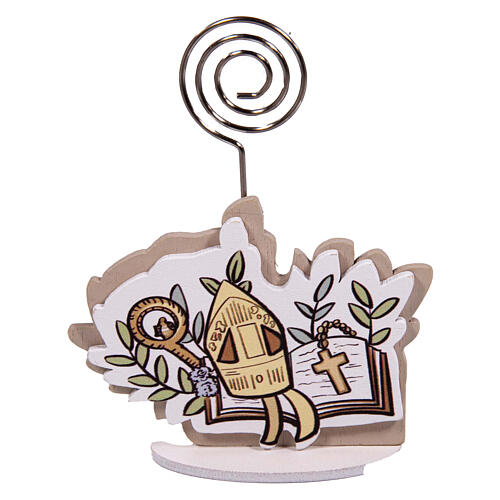 Un’altra bomboniera ideale per la Cresima, è la clip con immagine incisa nel legno, che rappresenta ancora i simboli distintivi della Mitra vescovile e del Pastorale. Questa bomboniera è il regalo perfetto da distribuire durante la celebrazione della Cresima, ideale per condividere questo momento speciale con amici e familiari. È disponibile in confezioni da 6 pezzi, il che lo fa rientrare tra le bomboniere Cresima economiche e convenienti.