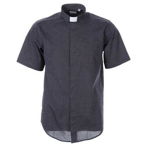 Camicia clergy a manica corta in cotone fil a fil di colore grigio scuro.