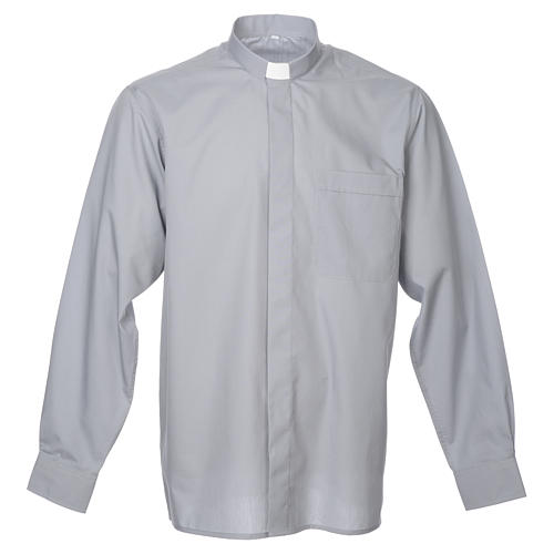 Camicia clergy a manica lunga in misto cotone di colore grigio chiaro.