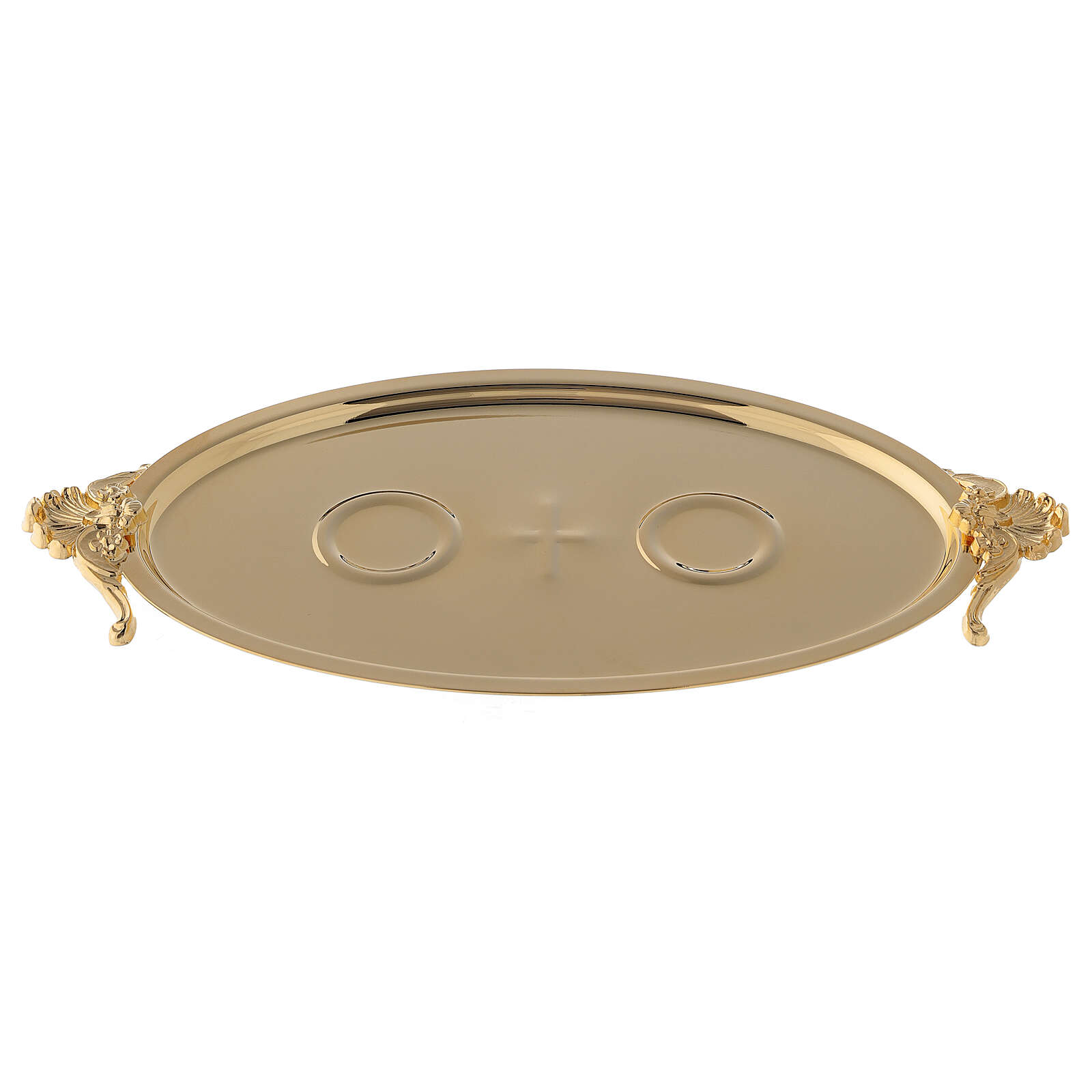 E' un bel vassoio dorato con l'incavo per appoggiare le fedi nuziali nella celebrazione del matrimonio.