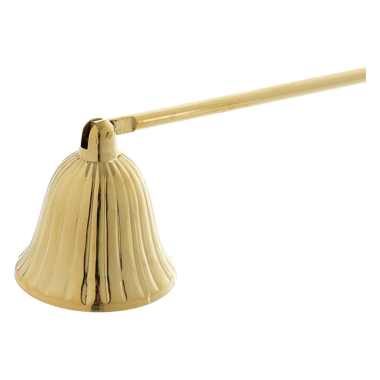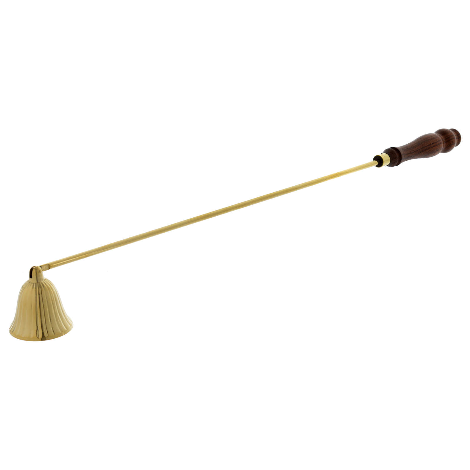 Spegnifiamma con manico in legno in ottone dorato.