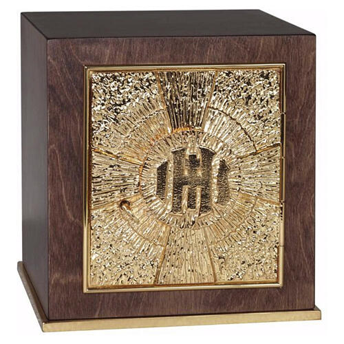 Tabernacolo in mogano porta dorata simboli IHS 28x25x25 cm