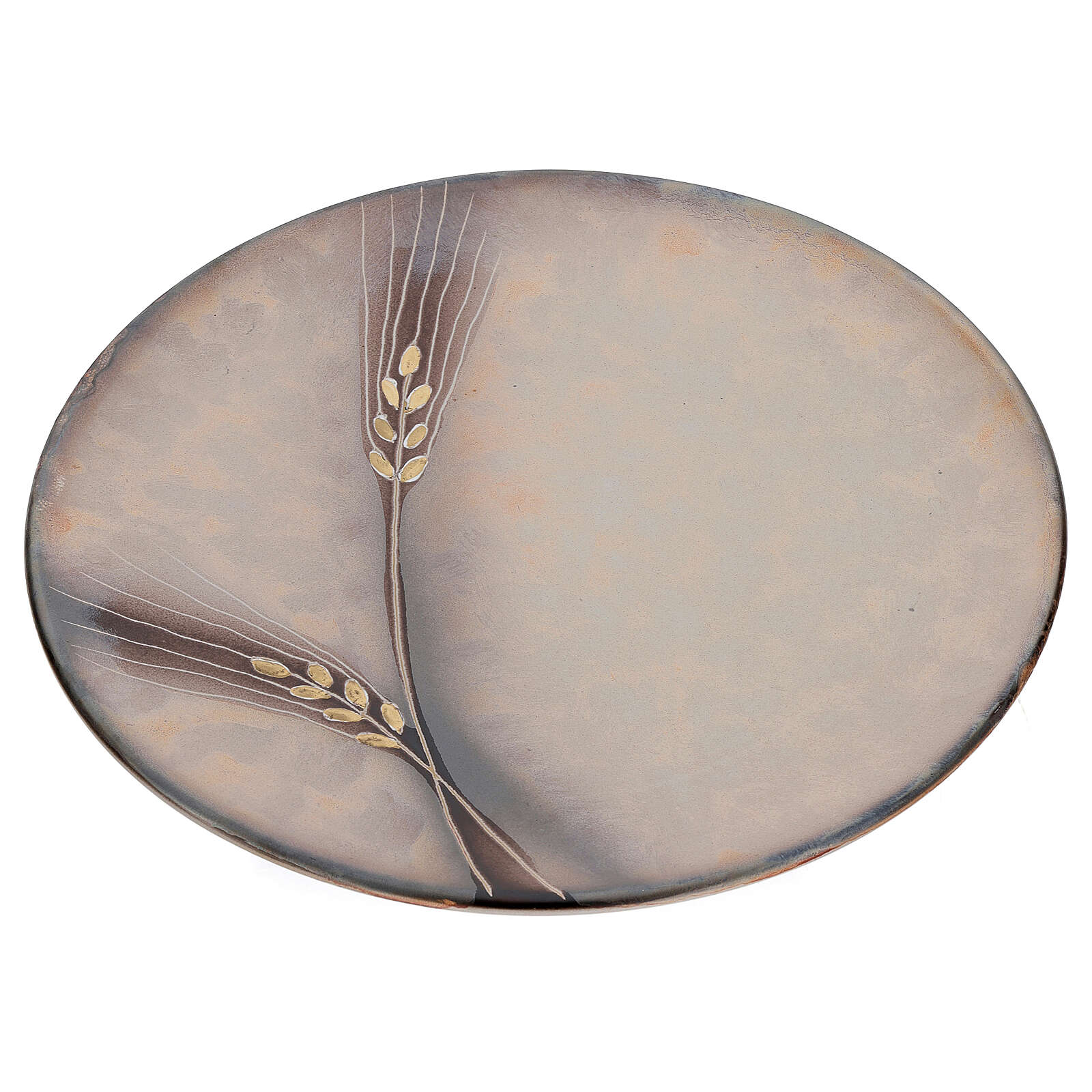 Piatto in ceramica color pompei con decoro spiga dorata da mettere sotto la brocca per manutergio nelle funzioni liturgiche.