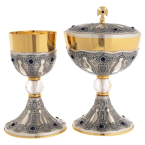 Calice e pisside da concelebrazione cesellati con lapislazzuli e nodo cristallo