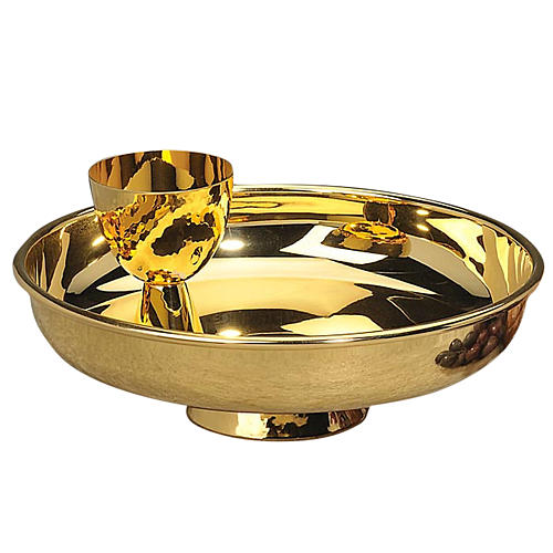 Patena in ottone dorato con calice da viaggio.