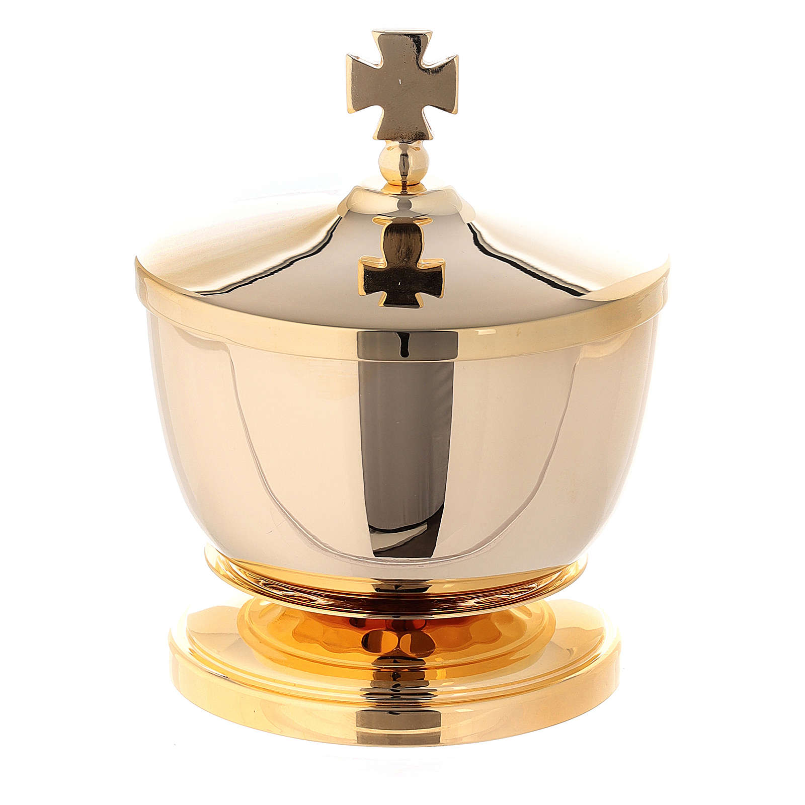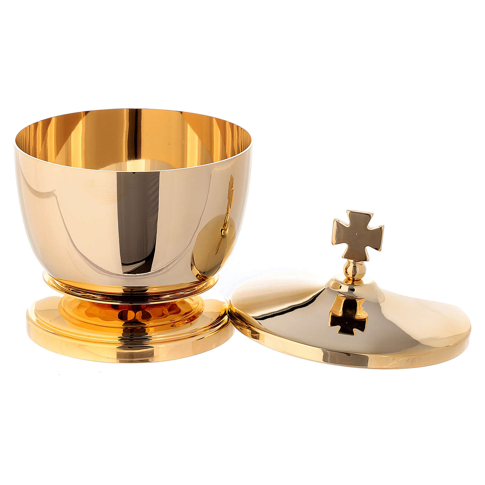 Questa piccola pisside in ottone con doratura 24k è realizzata in Italia da artigiani specializzati.
