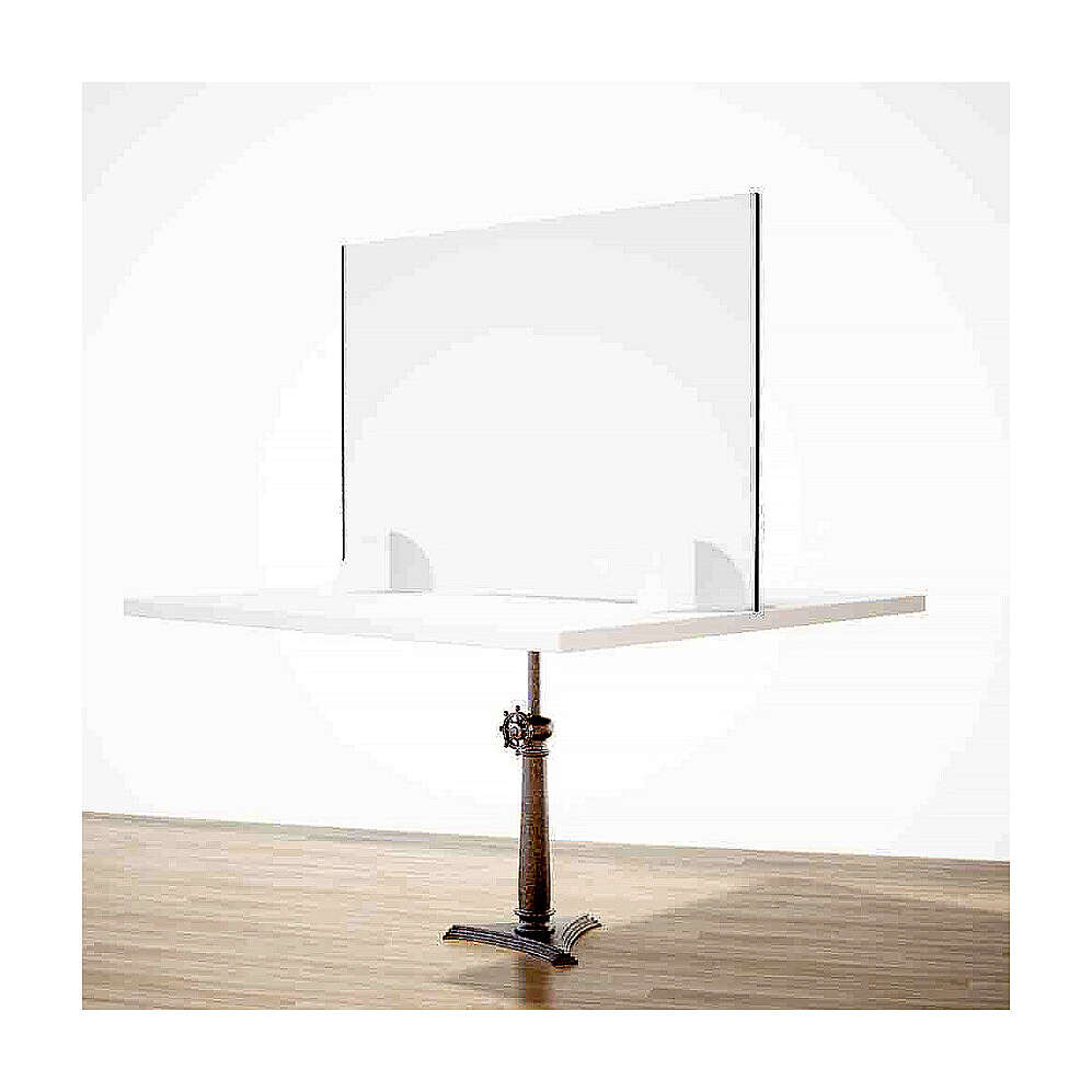 Pannello con piedi di sostegno che hanno ingombro totale 20 cm (10 cm per lato). I sostegni sono in Krion: materiale innovativo con tecnologia k-life fotocatalisi antibatterica. Autoportante e facile da installare. Raggiature angolari.