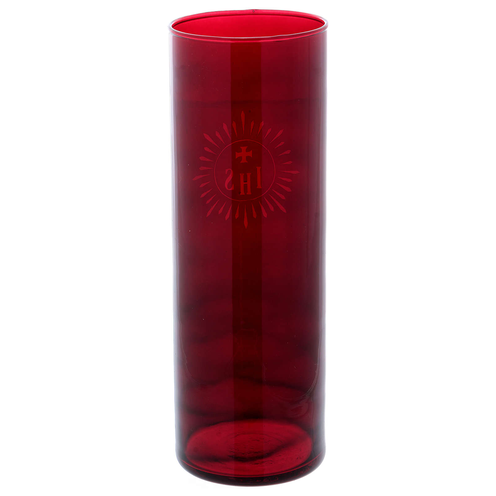 Portacero a bicchiere rosso IHS (altezza 22 cm - diametro 7 cm).