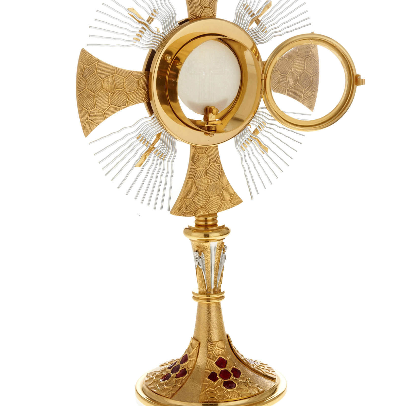 L' ostensorio è realizzato artigianalmente presso un'azienda italiana di consolidata tradizione nella lavorazione del metallo per l'arredo liturgico. L'alta qualità dei materiali, i disegni originali e le fasi artigianali della lavorazione sono le caratteristiche speciali di questi articoli.