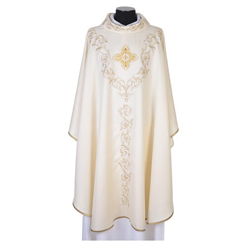 Casula 100% lana con croce barocca e inserti floreali dorati Gamma.