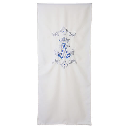 Questo Coprileggio liturgico è realizzato in tessuto avorio, ed è specificamente pensato per le celebrazioni Mariane.