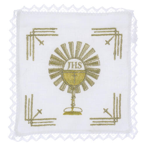 Set completo in lino da altare JHS calice e ostia ricamo oro