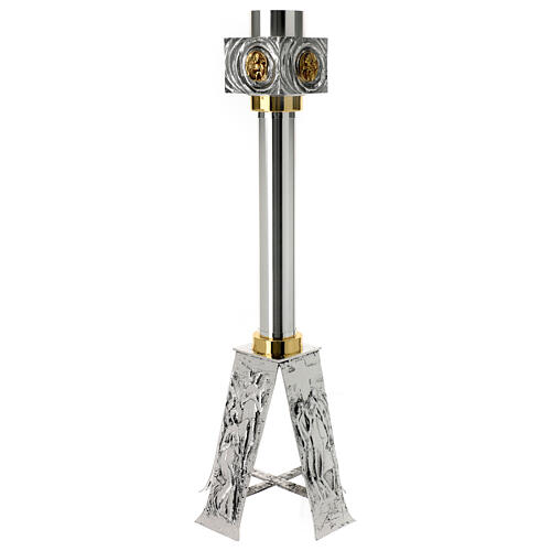 Portacero in ottone fuso bicolore argento oro, di altezza 80 cm.
