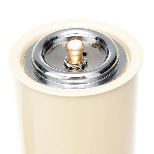 La coppia di candelieri da altare è venduta, come presentata nella foto: corredata dalle candele ad olio. Visualizza nelle misure l'altezza e il diametro di candeliere, candela e cartuccia per cera liquida.