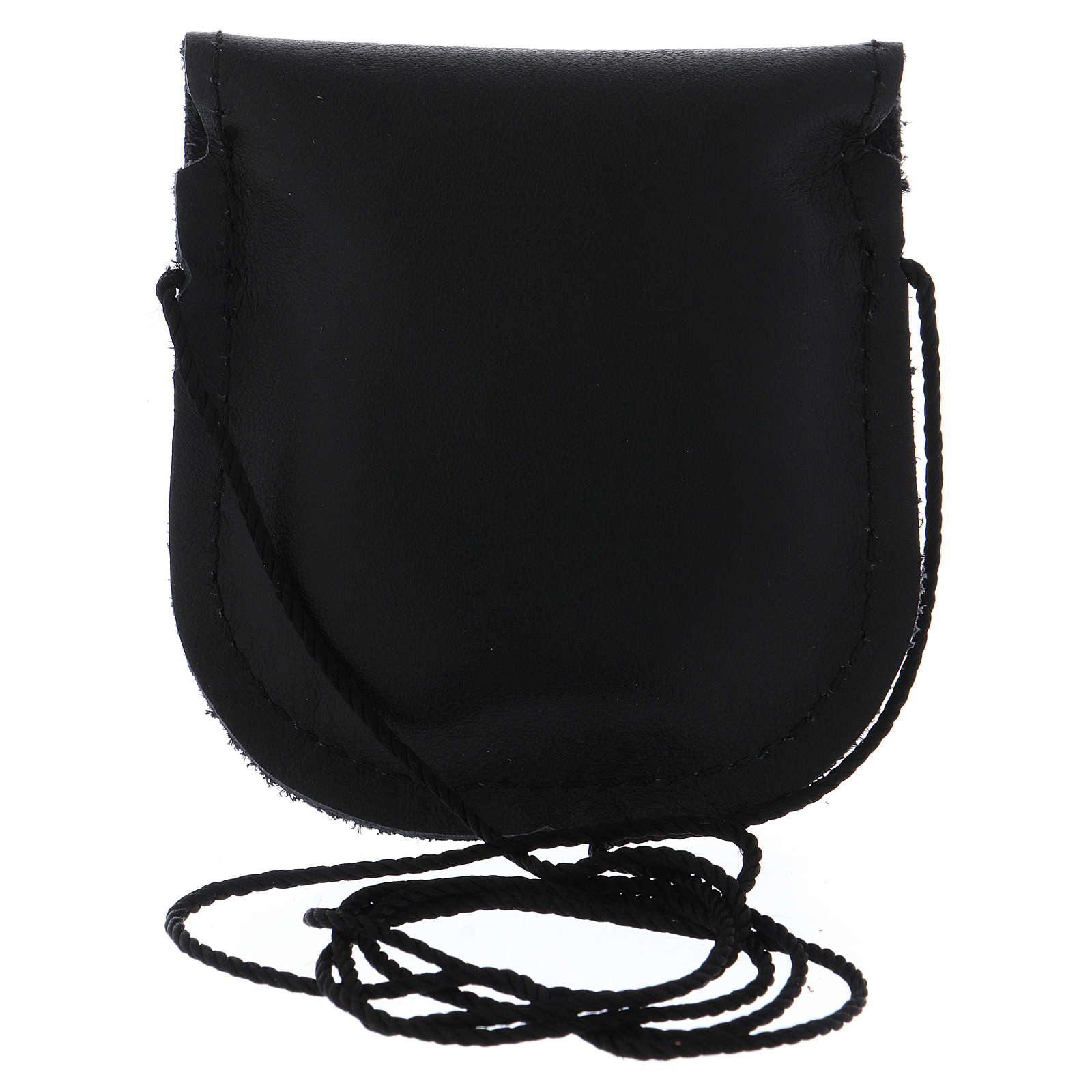 Disponibilità immediataBorsetta portateca in pelle con all'interno una teca in ottone dorato con tanto di cordina per appenderlo al collo. L'articolo è fabbricato in Italia e la teca ha il diametro di 5.5 cm.