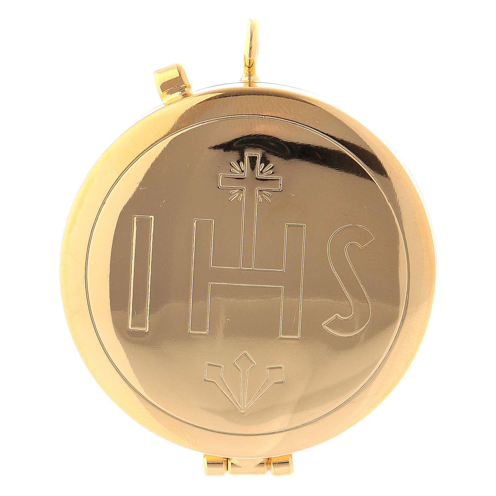 Teca eucaristica nella quale si possono facilmente aggiungere ostie di diametro 4 cm.