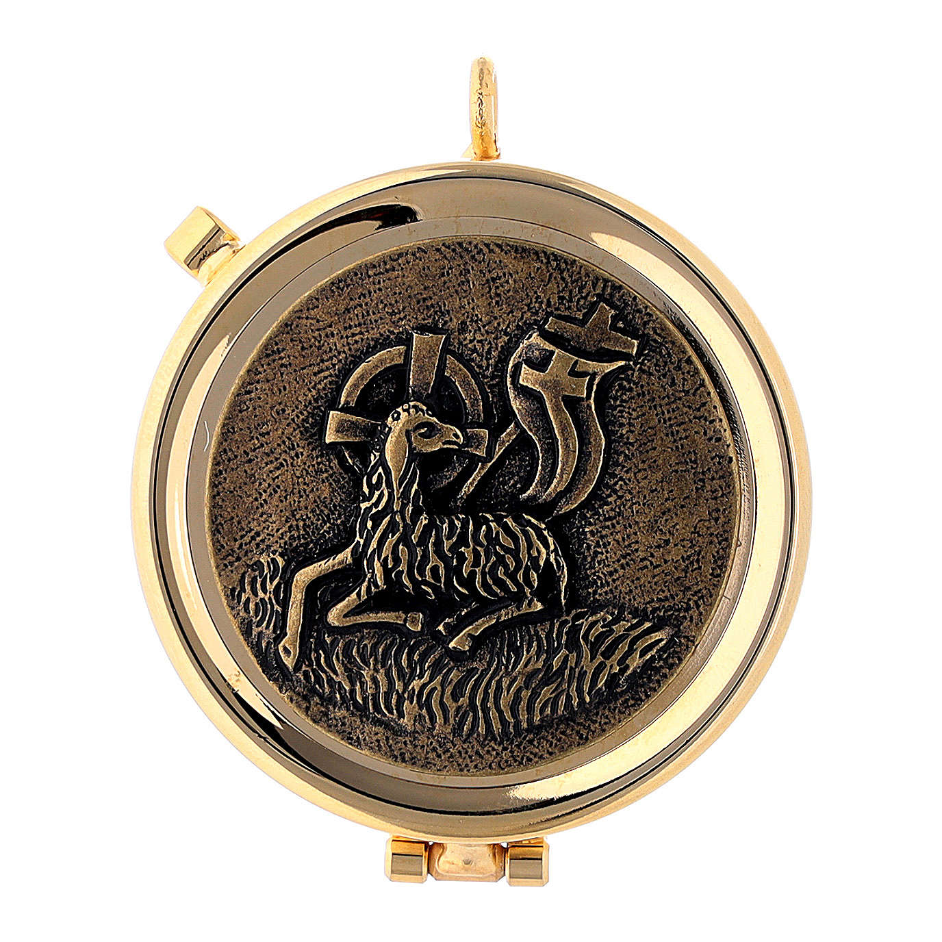 Questa techina Eucaristica è realizzata in Italia da artigiani specializzati. Ha un diametro di 4 cm e doratura garantita oro 24k.