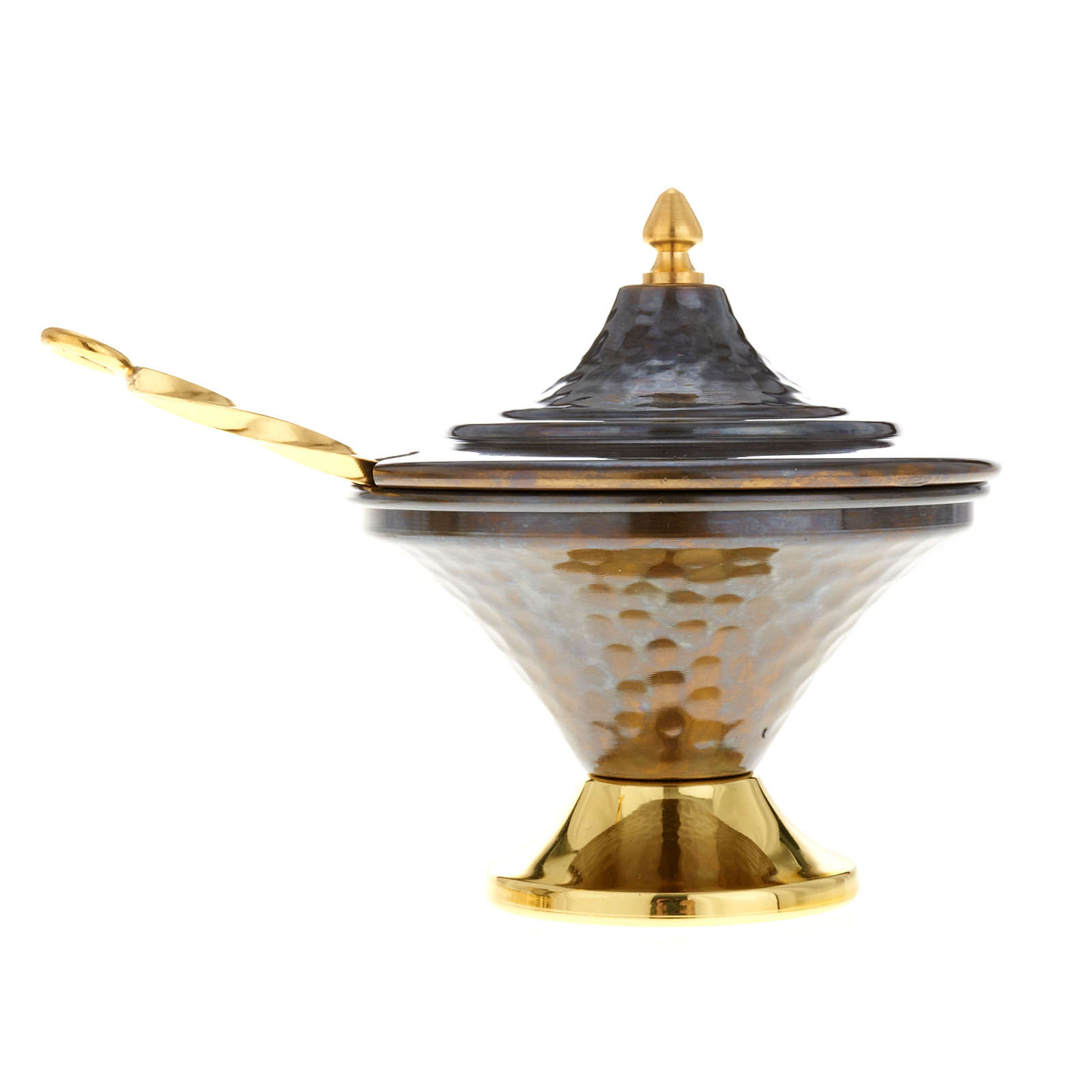 Si tratta di un turibolo con navetta in ottone color bronzo sbalzati.