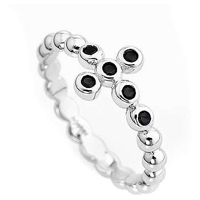 Anello AMEN Boules argento 925 Bianco zirconi neri.
