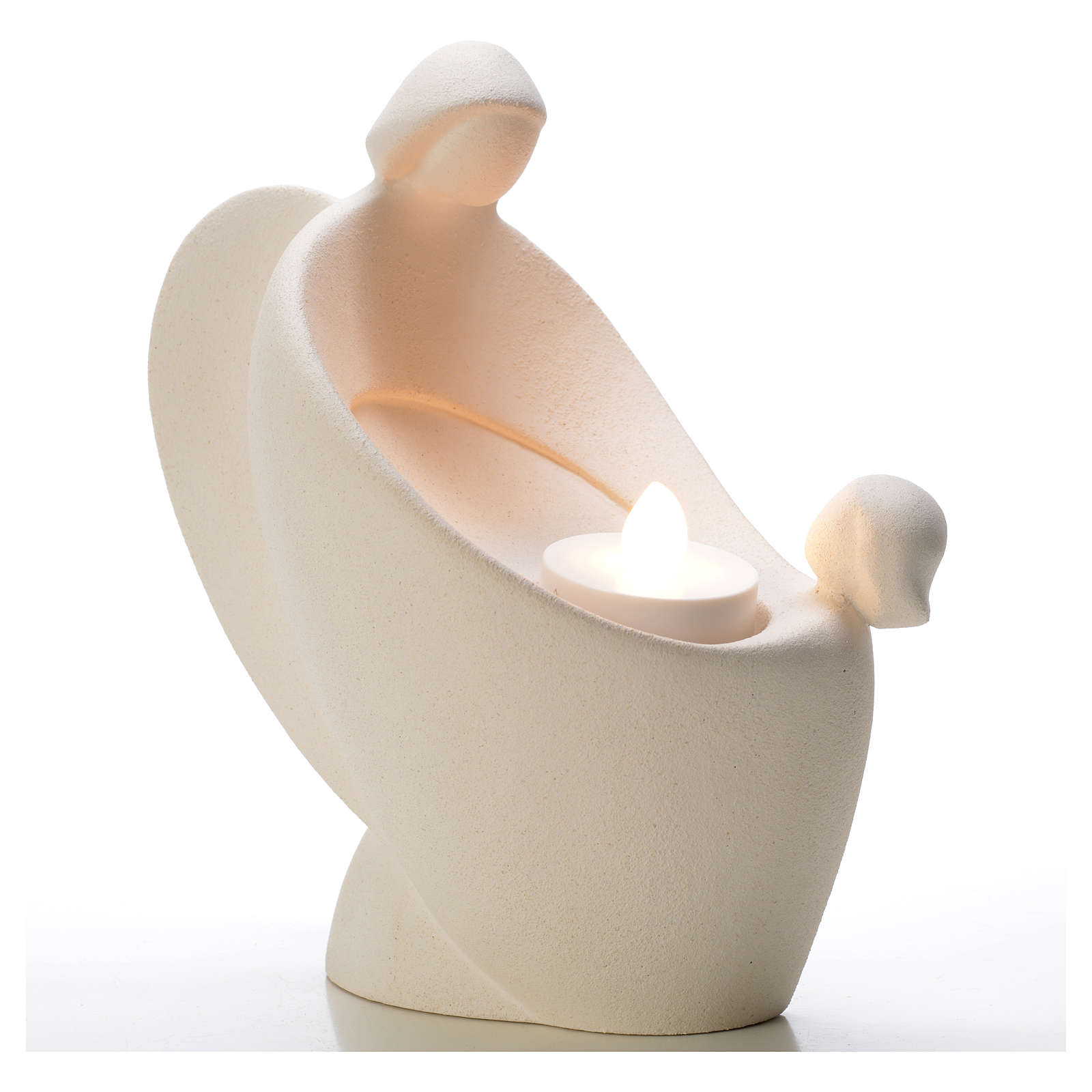 Angelo con bimba 18 cm in argilla refrattaria.