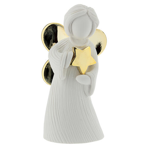 Angelo stilizzato resina bianca stella e ali oro 12cm.
