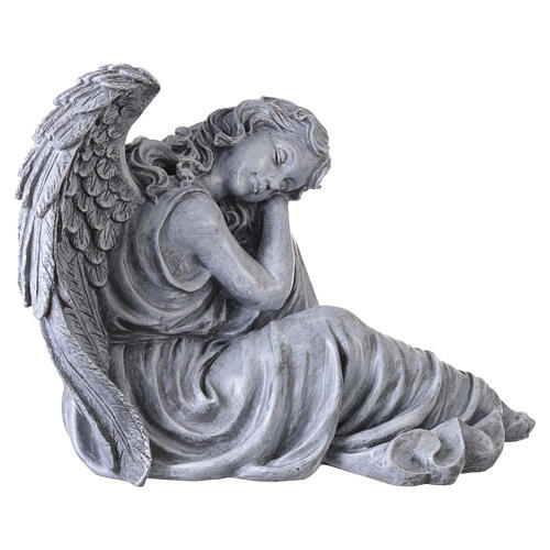 Statua angelo addormentato da esterno 50x65 cm in resina effetto pietra grigia finitura antica.