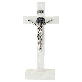 Crocifisso tavolo resina bianca 25x10 cm San Benedetto