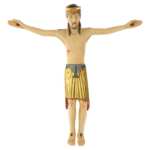 Corpo di Cristo in legno d'acero dipinto, realizzata manualmente da artigiani della Valgardena, secondo la migliore tradizione artistica locale. Gli artigiani e gli artisti scolpiscono il legno dei boschi alpini e lo dipingono con maestria in ogni minimo particolare. Articolo di grande pregio e qualità.