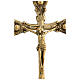Crocifisso a doppia faccia in ottone dorato, dimensioni 37x19 cm.