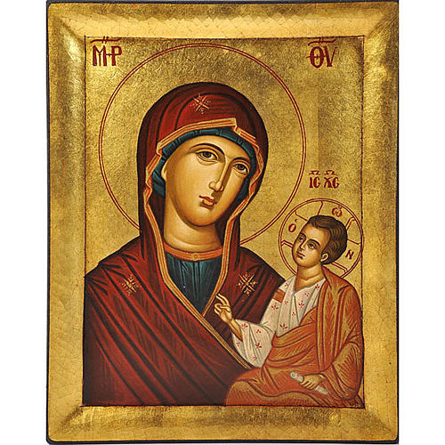 E' una rappresentazione della Santa Vergine Hodigitria, è una icona dipinta a mano in Grecia secondo le antiche tecniche iconografiche della tradizione bizantina. 'Odighitria' significa colei che indica la via e questa via è suo figlio Gesù. E' tra le icone più antiche che si conoscano, secondo la tradizione arriva da Gerusalemme poco dopo l'anno 1000 e attraverso Costantino e varie peripezie giunge in Russia nel XII secolo. Questa raffigurazione si ispira all'i...