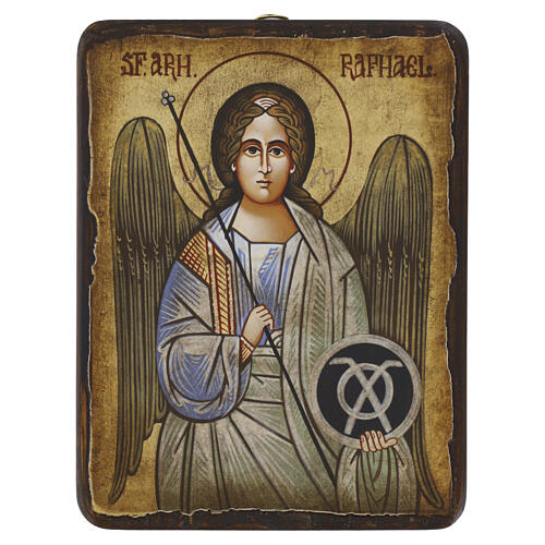 Icona Romania Arcangelo Raffaele stile antichizzato 18x15 cm.