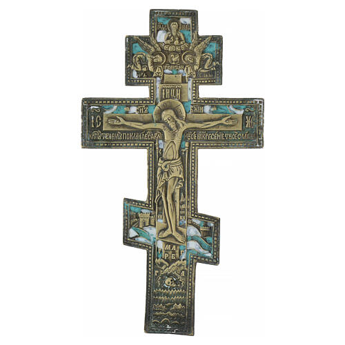 Crocifisso ortodosso Russia in bronzo antico XVIII sec con smalti 25x14 cm