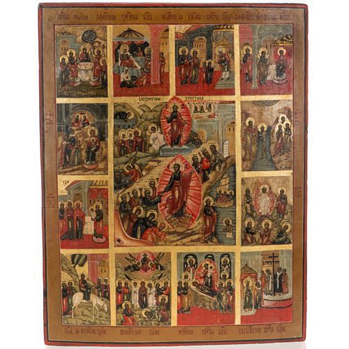 Icona antica russa "Dodici Grandi Feste" XIX sec.