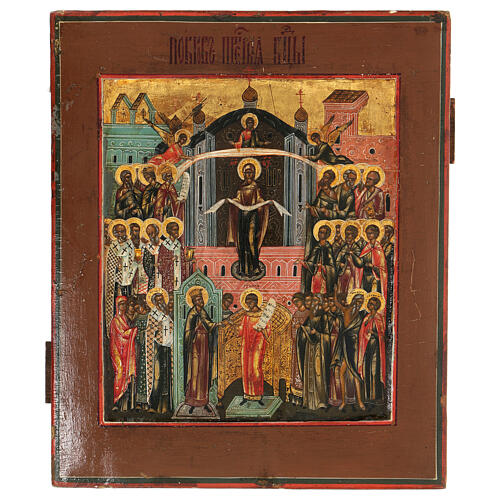 Icona Pokrov Russia dipinta del XIX sec. 30x25 cm.