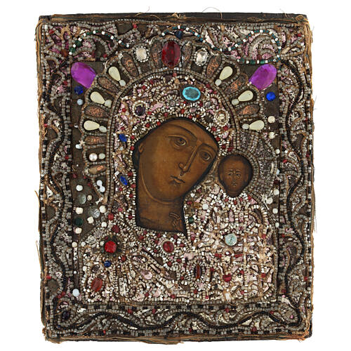 Madonna Kazan ricamo onorifico antica XVIII sec Russia 31x26
