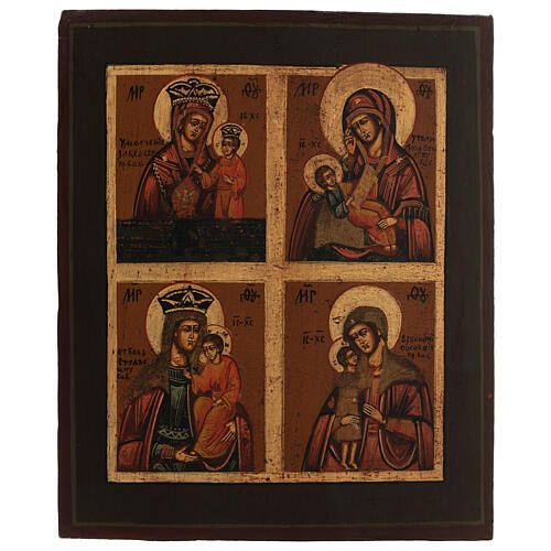 Quadripartita icona russa restaurata XXI sec 32x26 cm