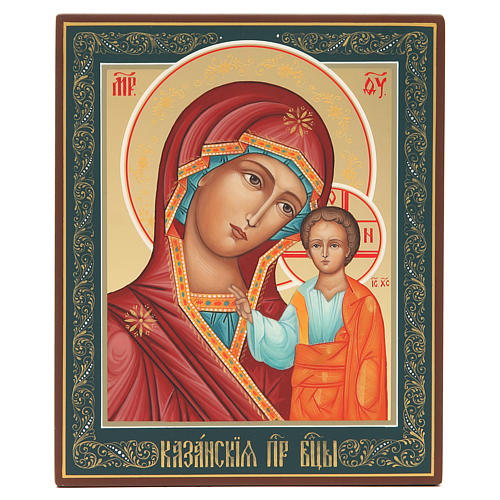 Icona russa dipinta Madonna di Kazan 22x18 cm