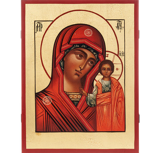 E' una delle icone mariane più diffuse ed amate. La Santa Vergine apparve nel Kazan, dopo che Ivan il Terribile aveva sottratto la regione al Khan tartaro, ad una fanciulla e le indicò il luogo dove trovare un'antica sua icona per onorarla. Tra guarigioni e fatti prodigiosi arrivò alla Cattedrale dell'Annunciazione.