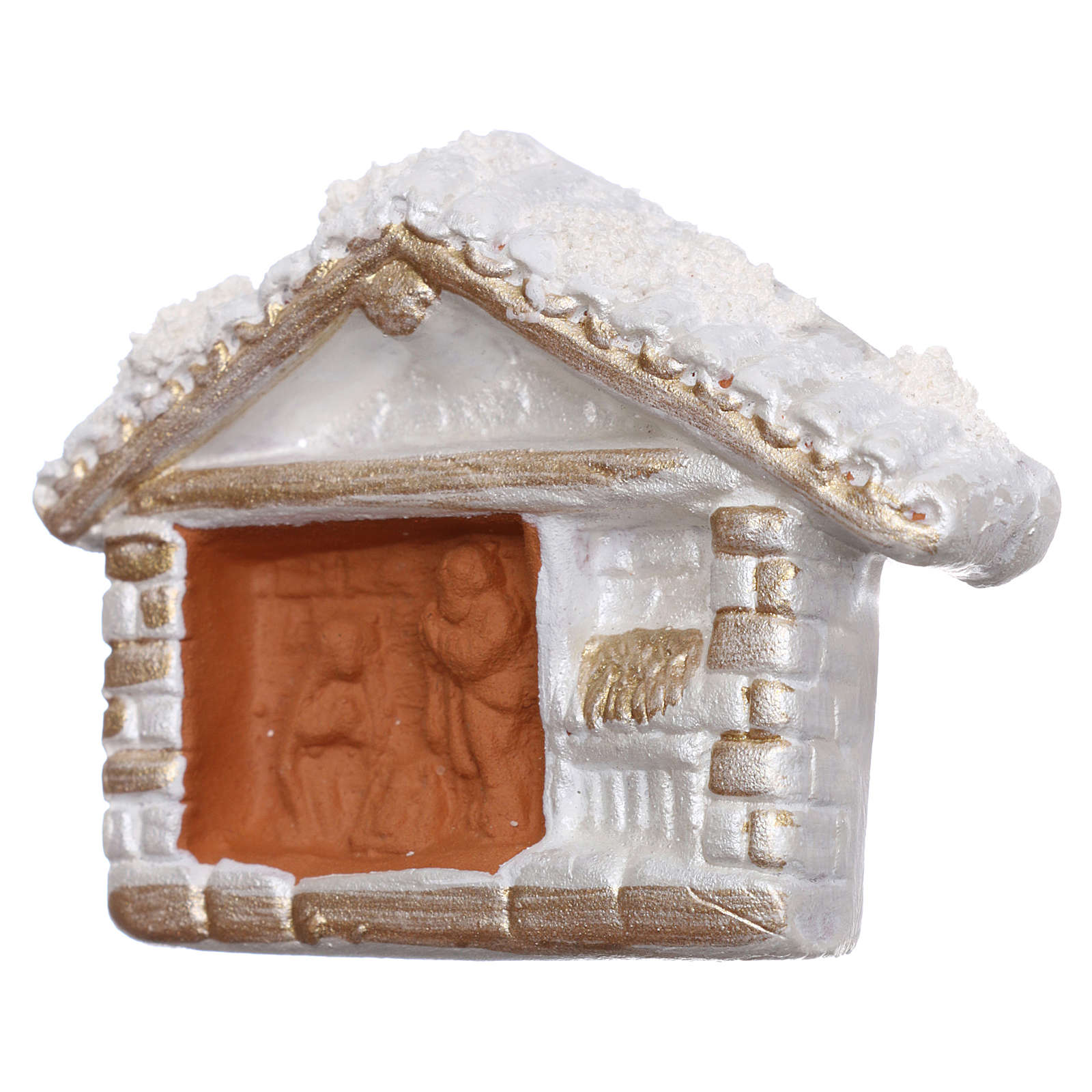 Calamita capanna bianca con finiture oro e Natività terracotta Deruta