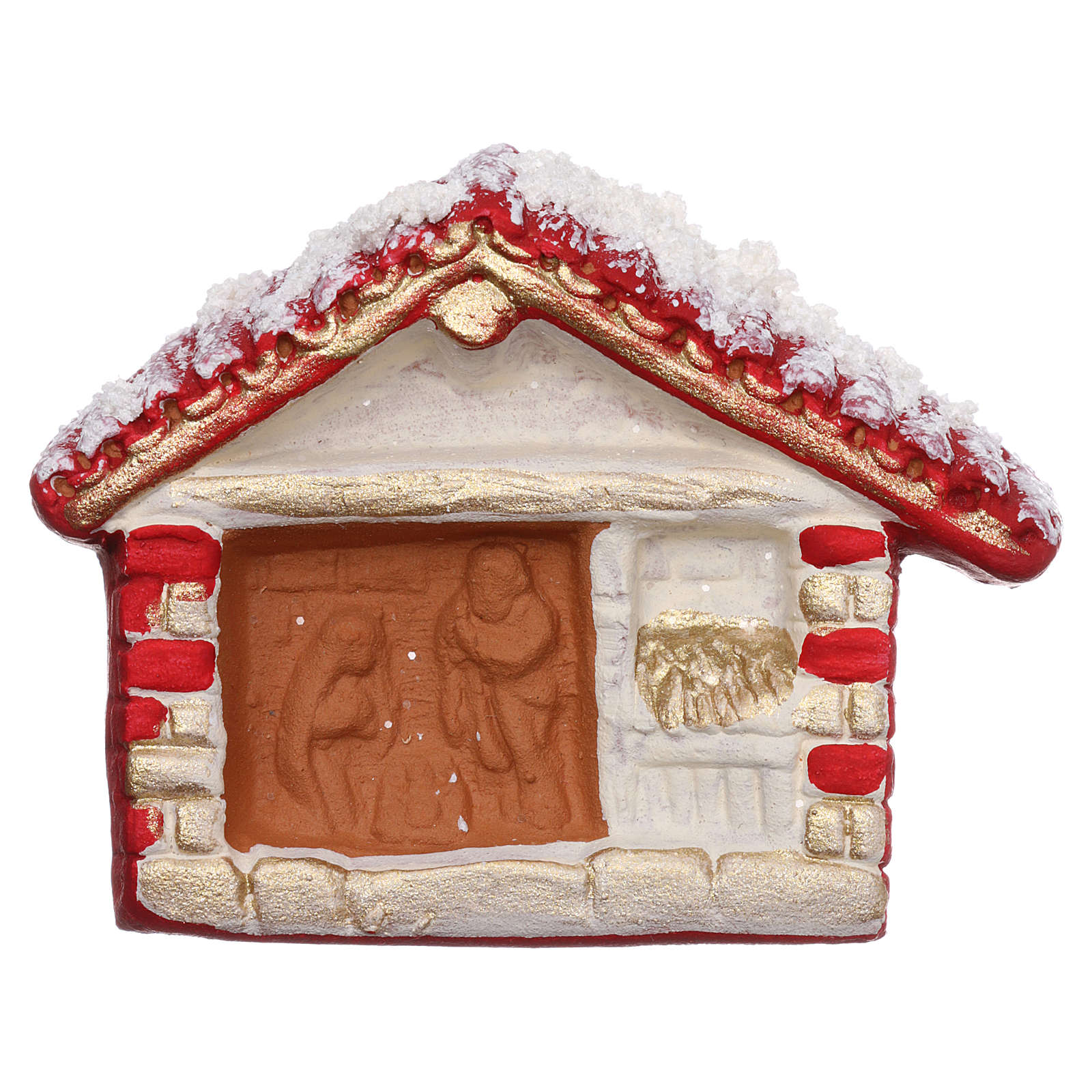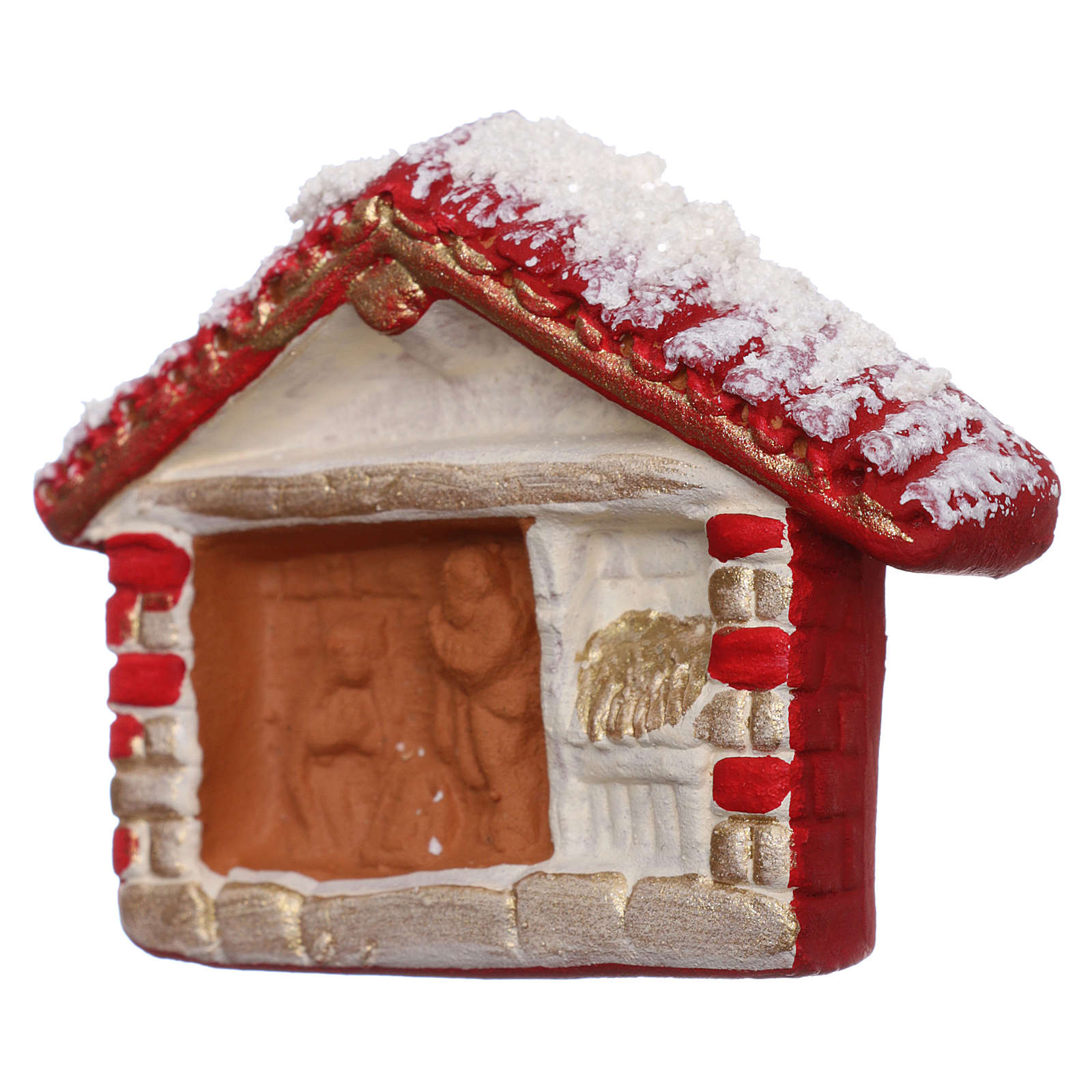 Capanna innevato realizzata a mano dai artigiani in terracotta a Deruta, paesino umbro celebre per le proprie creazioni artigianali in terracotta.