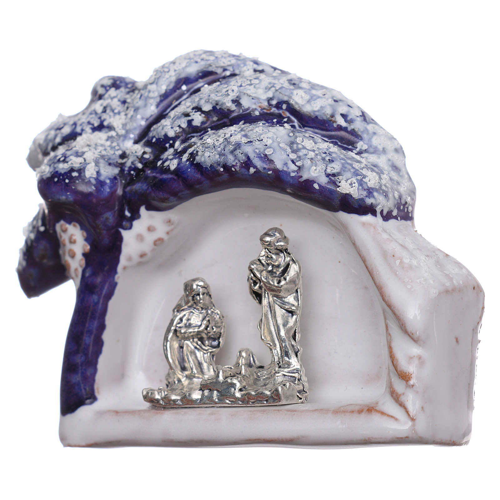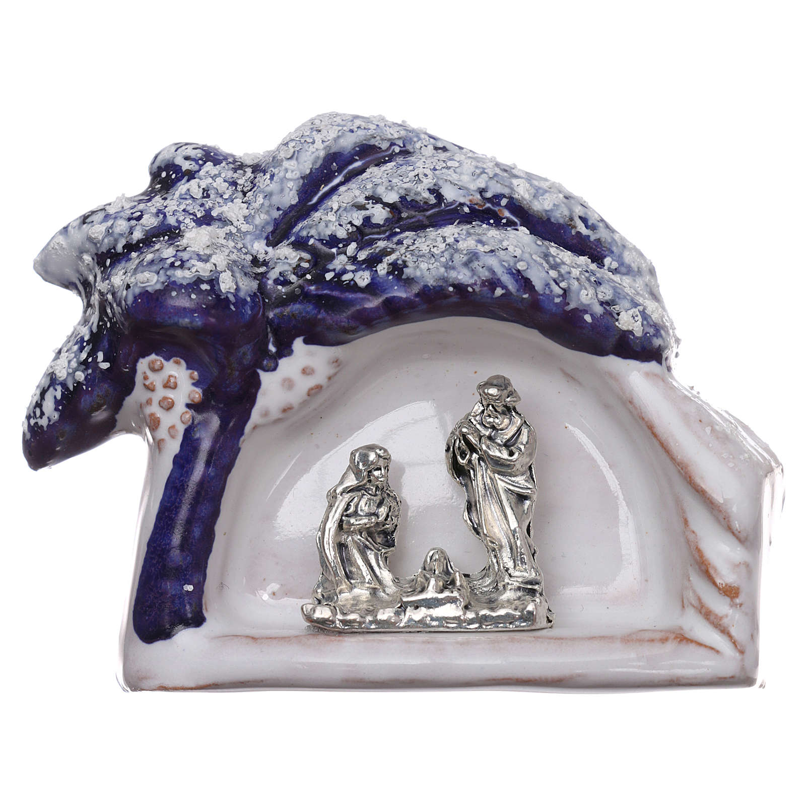Magnete albero blu con Natività in terracotta di Deruta