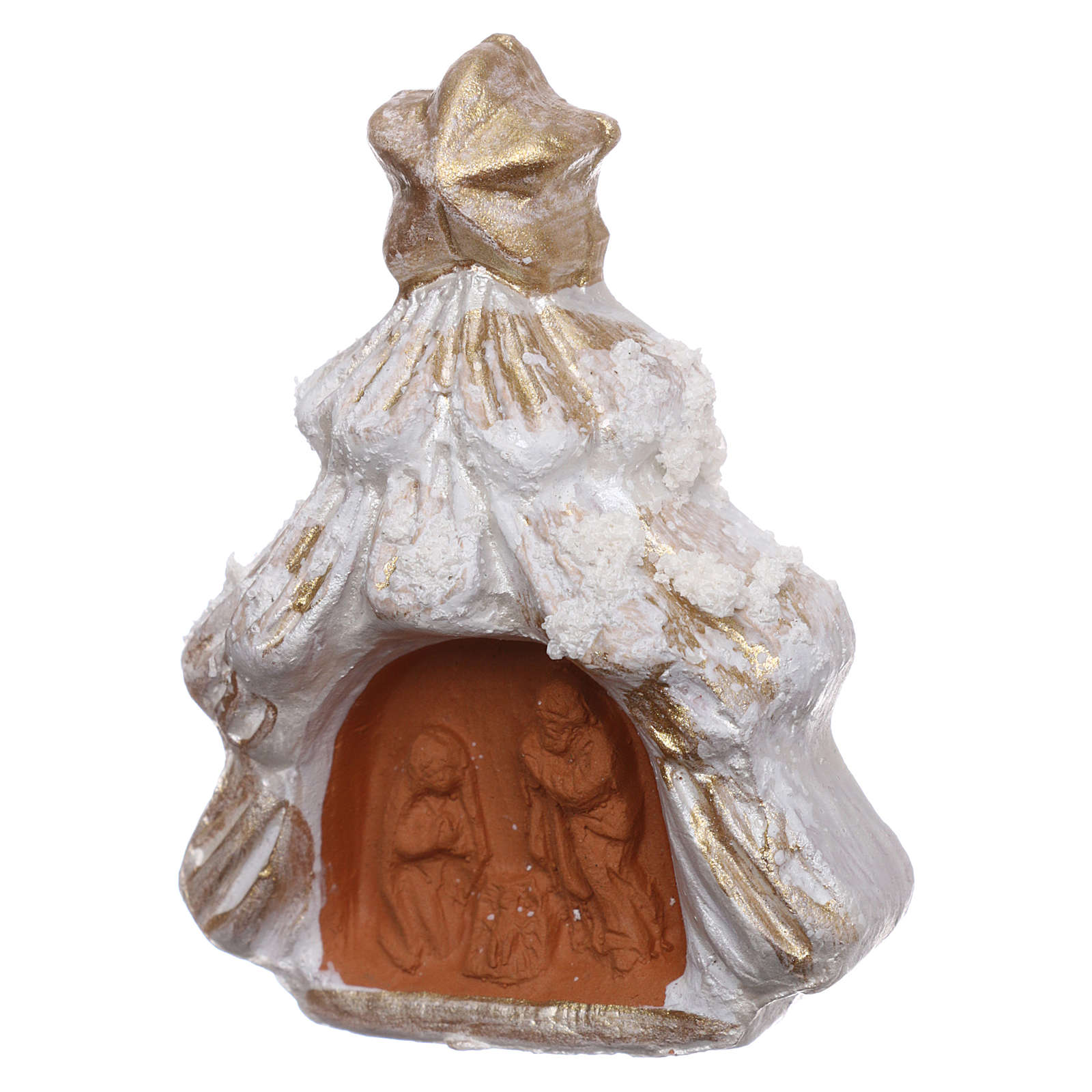 Magnete Albero di natale innevato oro e bianco con Natività terracotta Deruta