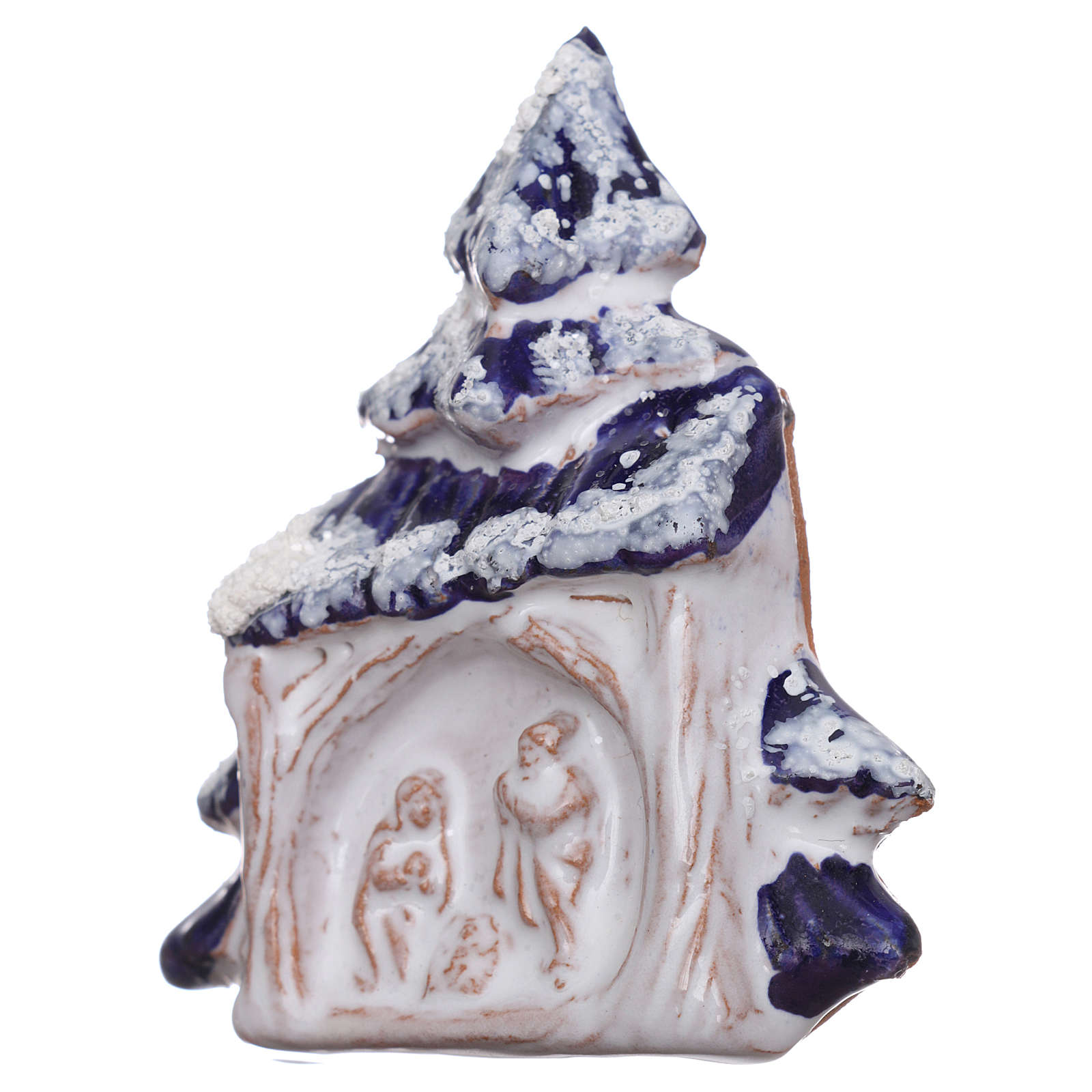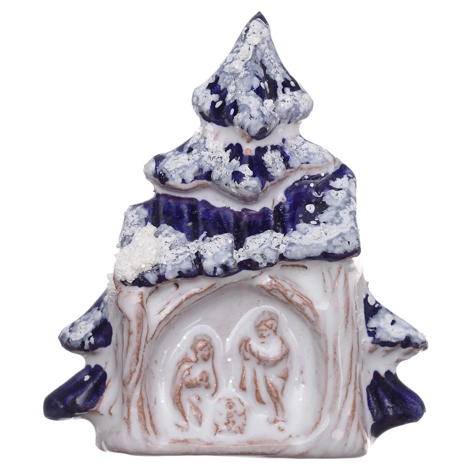 Magnete capannina e albero di Natale con Natività in terracotta Deruta