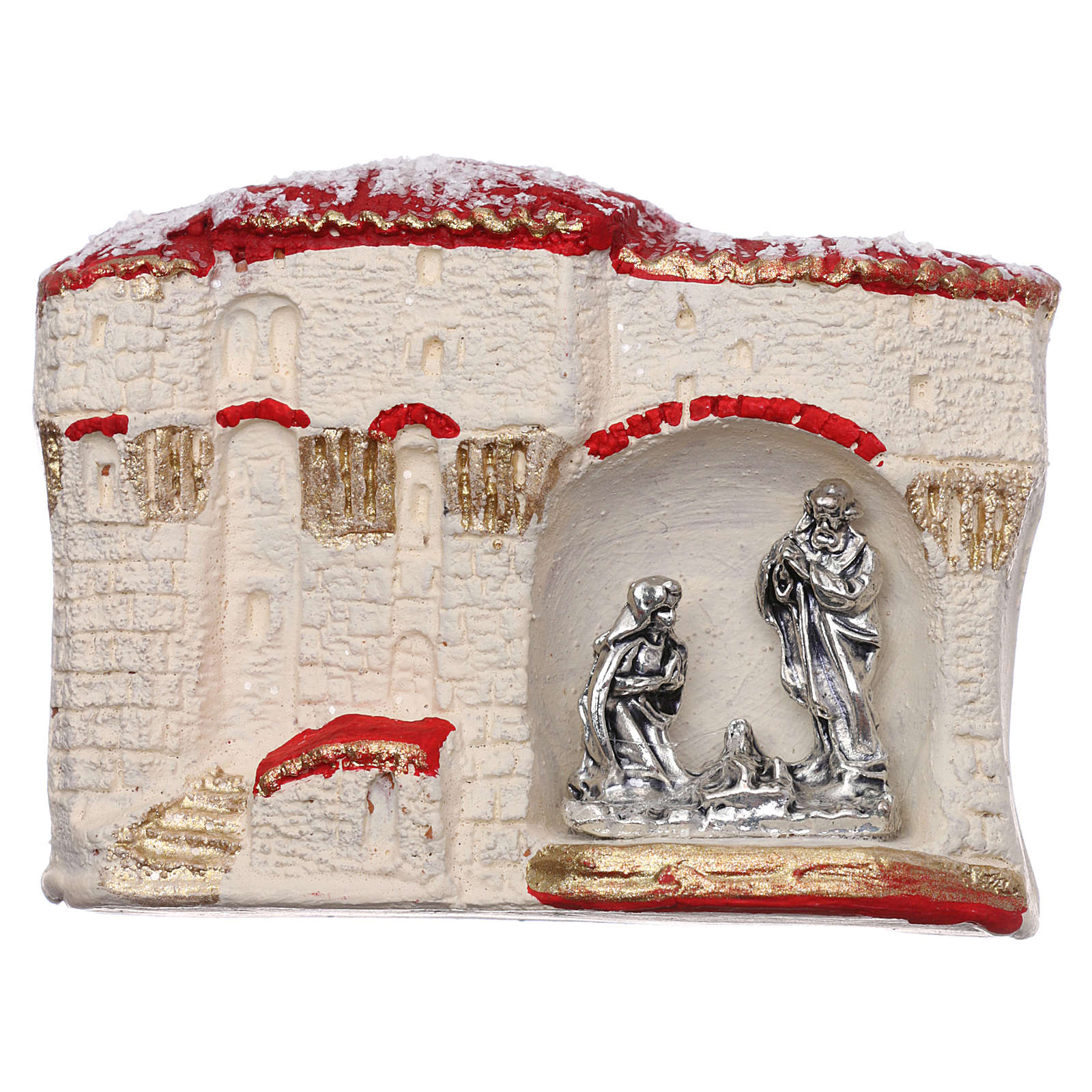 Magnete paesaggio arabo con Natività in terracotta Deruta