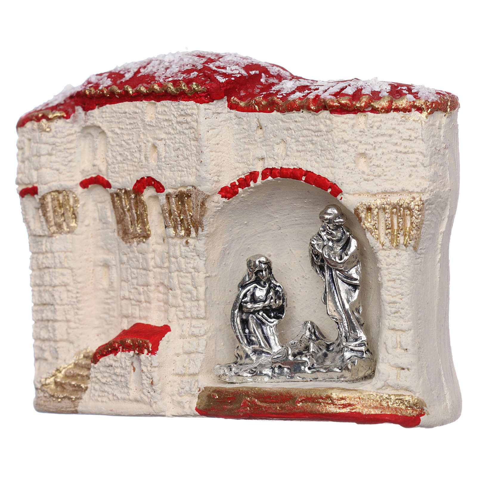 Magnete che raffigura un paesaggio arabo con Natività in metallo.