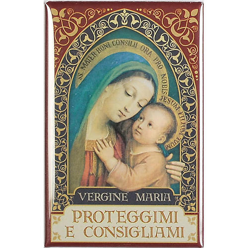 Magnete con immagine della Santa Vergine Maria e del bambino Gesù invocata per protezione e consiglio.