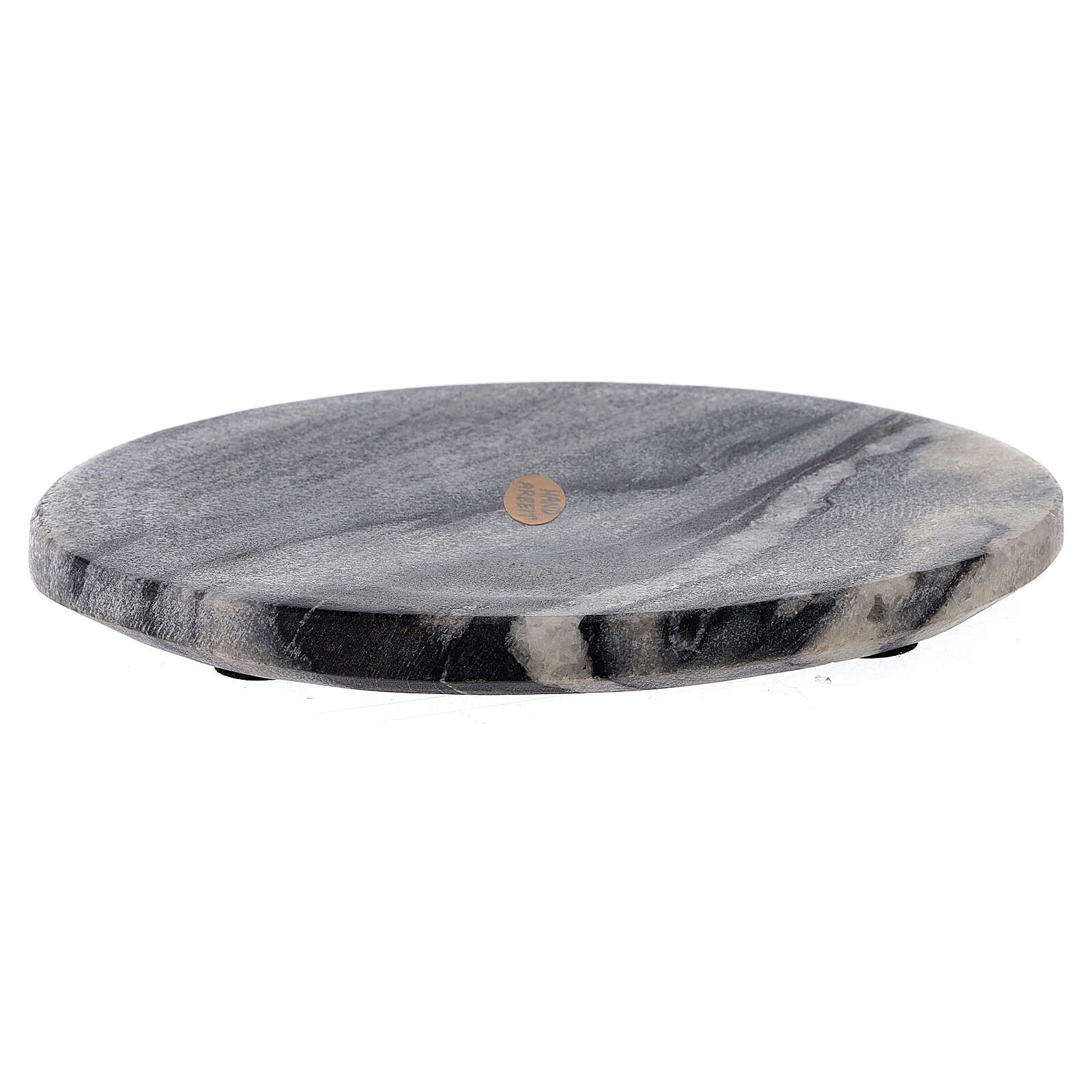 Piatto portacandela di forma ovale e misure 17x12 cm. Realizzato in pietra naturale, caratteristica che gli conferisce unicità grazie alle variazioni di colore e aspetto della roccia.