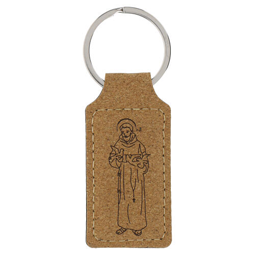 Portachiavi San Francesco sughero rettangolare cucito.