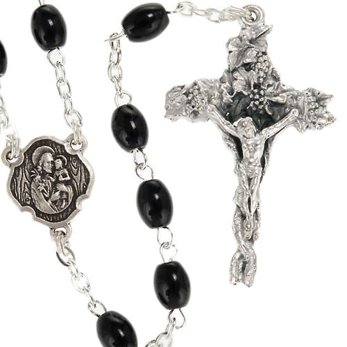 La crociera è un cuore, alto 2 cm circa, su cui c'è raffigurato San Giuseppe con Bambino. La croce, alta circa 4,5 cm ed è finemente lavorata. Il rosario ha i grani in vetro di Boemia di forma ovale.