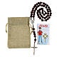 Il crocifisso posto alla fine ha misure 4,5x2,5 cm, il portarosario in juta ha misure 11,5x9 cm.